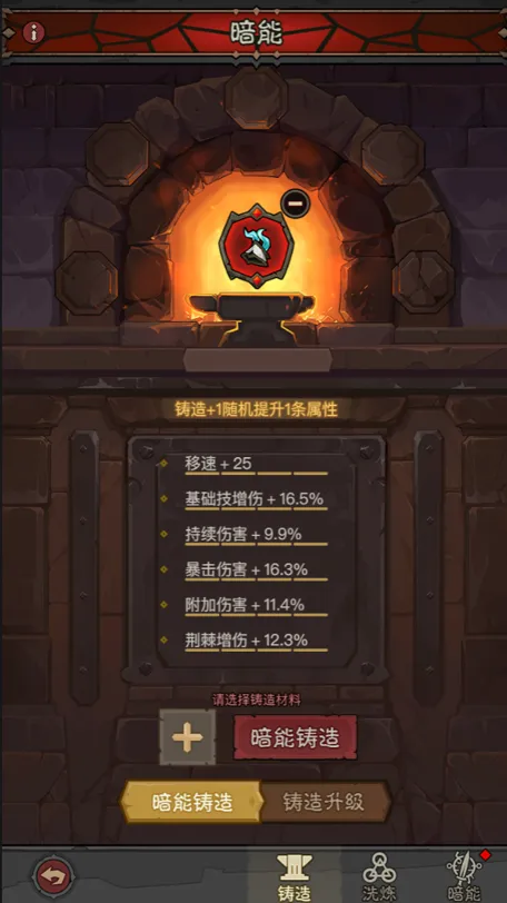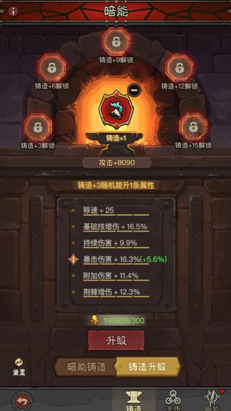 3、玩家可以对已经铸造的词条进行升级,升级后可以激活锁定词条,并增强暗能原有的随机词条。